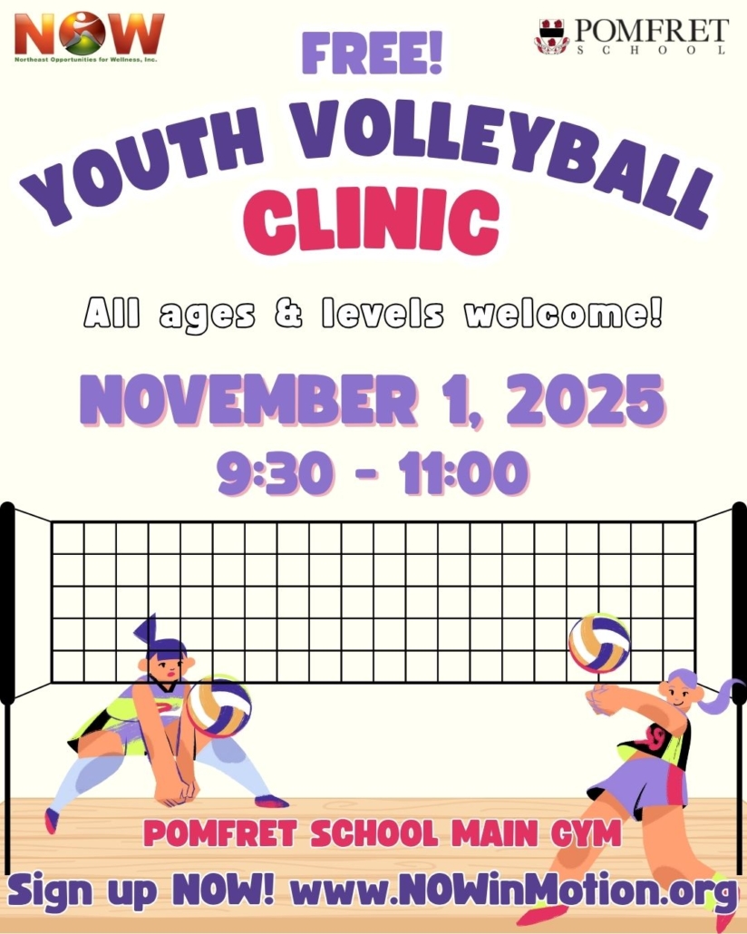 NOW is partnering with Pomfret Schools to host a Free Youth Volleyball Clinic for kids of all ages and skill levels! This fun and engaging event provides a supportive space for young athletes to learn new skills, practice teamwork, and build confidence on and off the court.