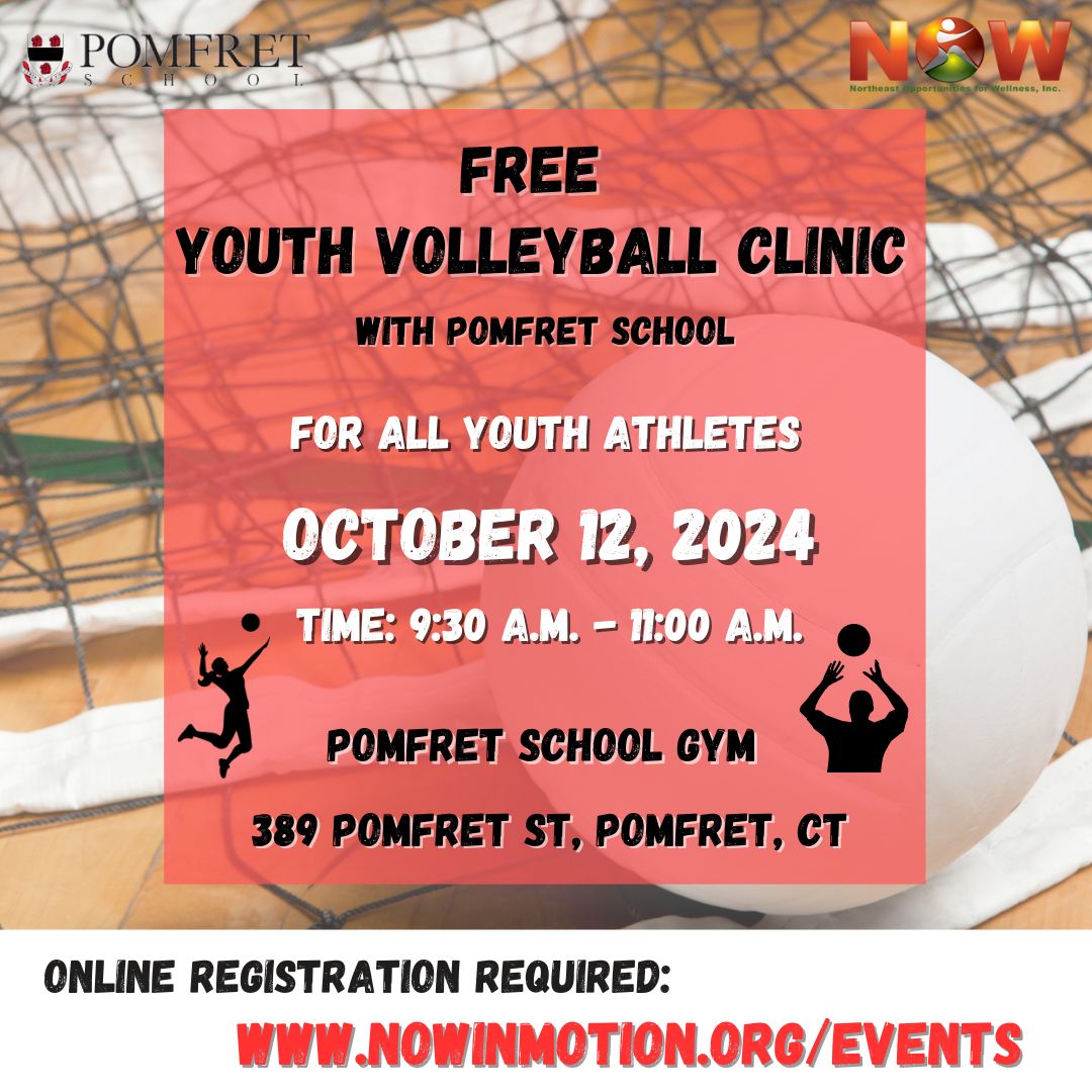Pomfret School 398 Pomfret Street, Pomfret Center, Connecticut, United StatesNOW is partnering with Pomfret Schools to host a youth Volleyball Clinic on October 12, 2024, from 9:30 AM to 11:00 AM! This FREE Youth Clinic is open to all […]
