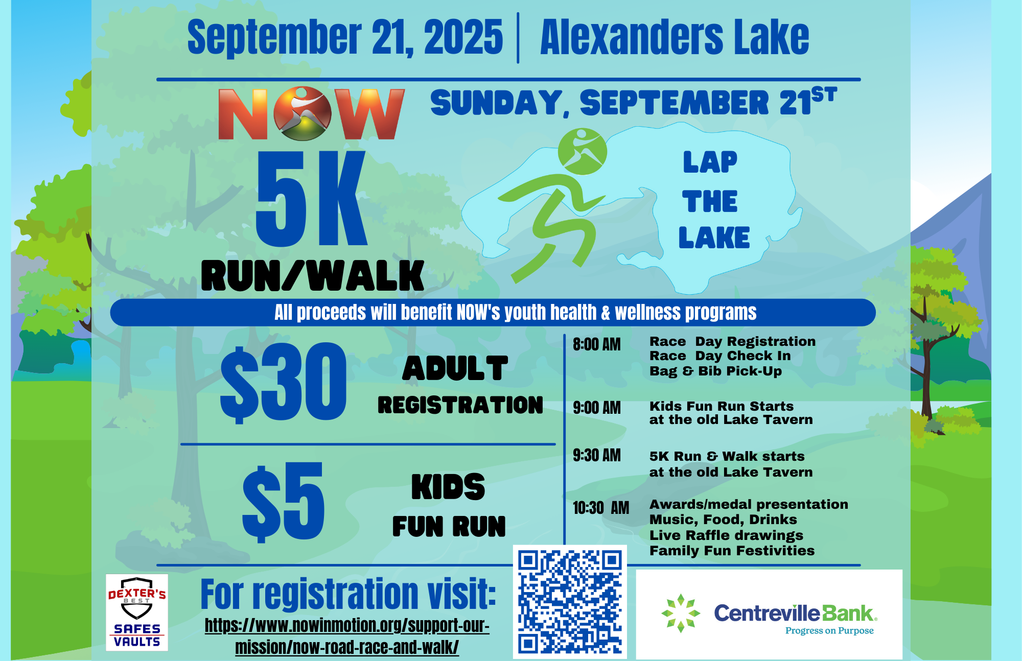 13th Annual NOW ~Lap the Lake~ 5k Road Race, Walk and Kids’ Fun Run