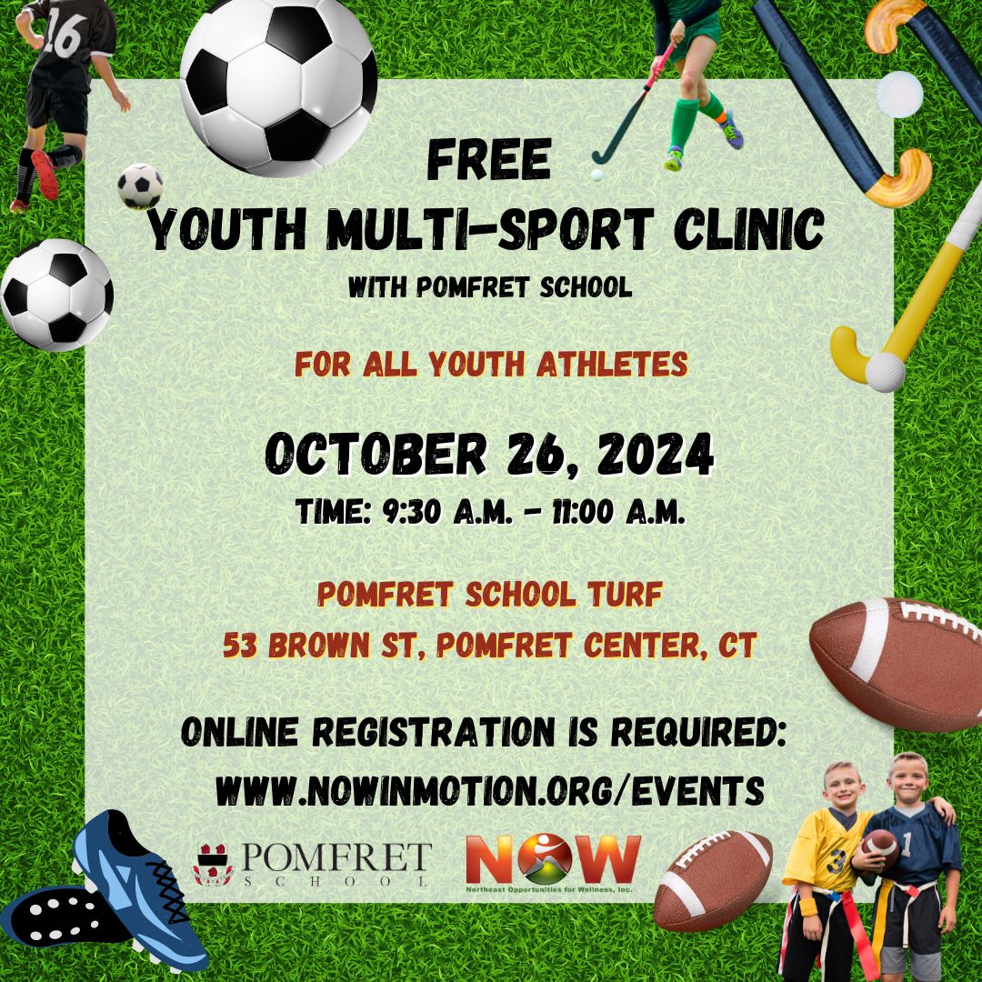 Pomfret School 398 Pomfret Street, Pomfret Center, Connecticut, United StatesNOW is partnering with Pomfret Schools to host a FREE Youth Multi-Sport Clinic, open to all youth athletes! This clinic will be on October 26, 2024, from 9:30 AM to […]